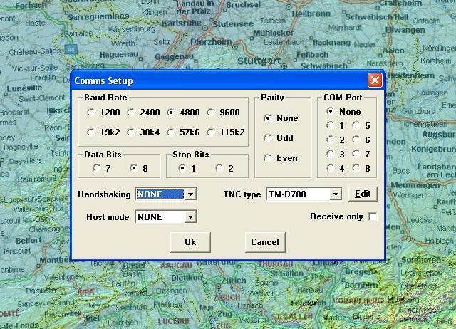 | Bei Comms-Setup benutze ich den eigenen TNC vom TMD700 natürlich können hier auch externe TNCs angesteuert werden |