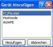 | Hier unter Geräte auf Hinzufügen gehen und PC/Flexnet auswählen |