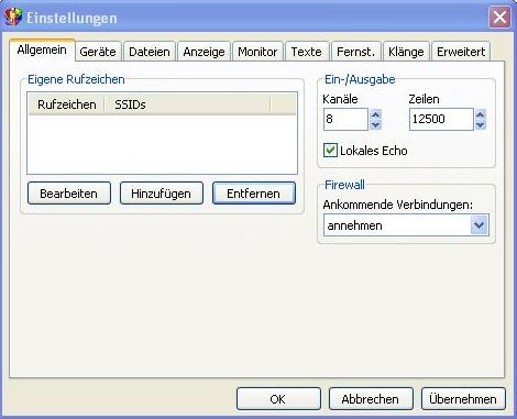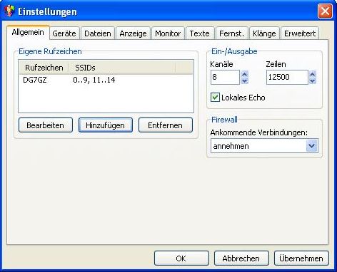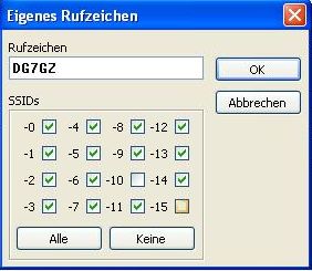Hier sollte das eigene Rufzeichen eingesetzt werden unter ssids habe ich alle außer -10 und -15 angeklickt |