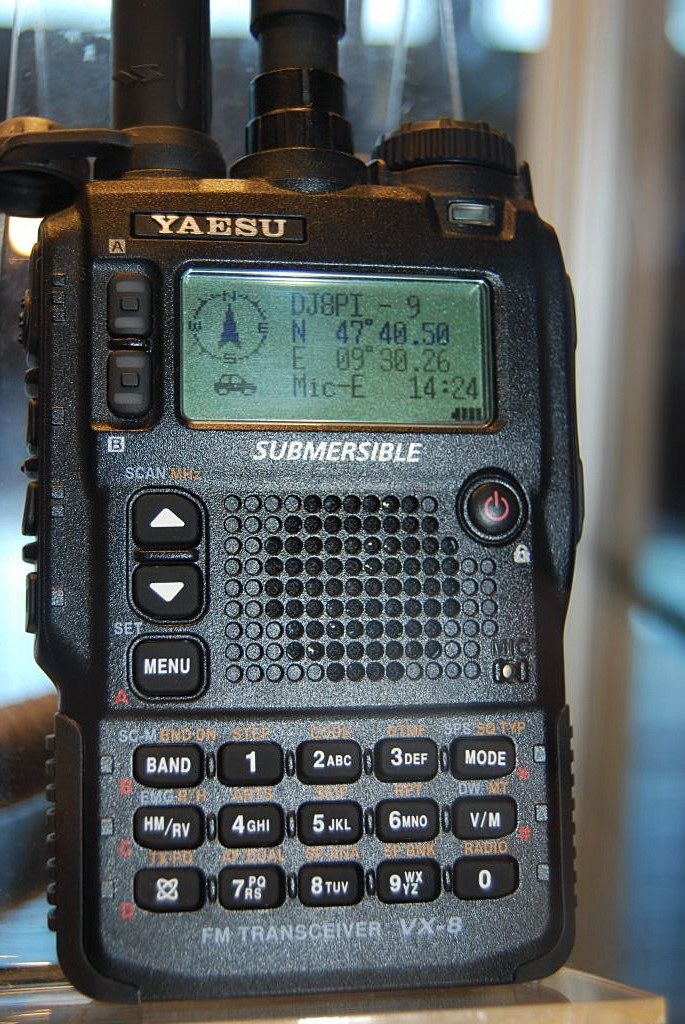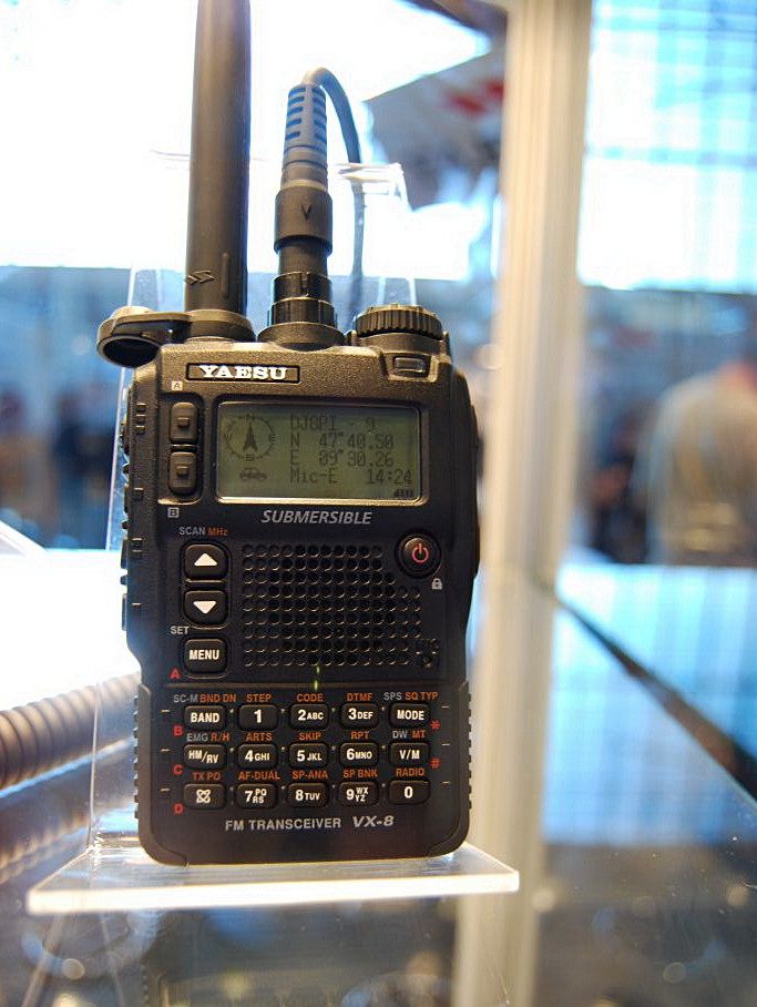 Hier ein paar Fotos vom neuen Handfunkgerät VX8 von Yaesu , mit APRS Funktion . Wir haben das VX8 leider nur in einem Schaukasten gesehen aber bei den Bildern kann man ganz gut die APRS-Funktion sehen. Was ich gut finde an diesem Gerät das ,das GPS im Handmicro schon eingebaut ist , und daher nicht noch zusätzlich ein Gerät für die GPS-Daten mitgeschleppt werden muß.Meine Frage hierzu wäre werden die Stationen auch auf dem display dekodiert wenn nicht wäre das wirklich schade. So nun viel Spaß beim Betrachten der Bilder.Die Fotos stammen von der Ham-Radio von 2008.